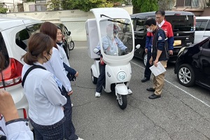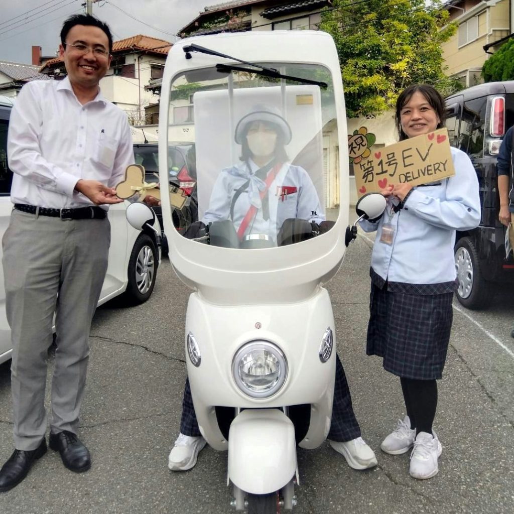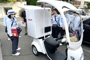 10月に、ヤクルトジェームス山ステーション※にて、EVデリバリーのテスト第1号が納車されました。今後の本格的な導入に向けて、走行やメンテンナンスについてのテスト検証を実施してまいります。