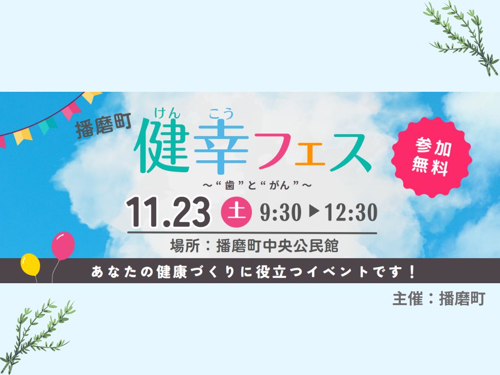 11月23日(土)、播磨町中央公民館にて播磨町主催「播磨町 健幸フェス」が開催されます。“歯”と“がん”をテーマに大人も子どもも一緒に楽しめるイベントです。兵庫ヤクルトもイベントに協賛し、ブースでアンケート回答による「腸年齢チェック」や商品紹介・サンプリングを実施します。