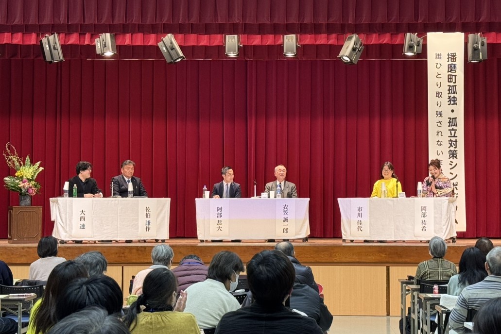 第一部では内閣府孤独・孤立対策推進室 孤独・孤立対策推進参与 大西連さまの「孤独・孤立問題とその支援」についてのご講演。第二部ではパネルディスカッションがおこなわれました。播磨町長をはじめ、弊社社長のほか、播磨町でさまざまな立場で地域の支援やつながり(連携)活動に尽力されている団体、個人の方が登壇され、「自分たちの活動の中で、孤独・孤立の予防や対策につながっていると思うこと」「どんなつながり(連携)があれば、予防や対策が出来ていくと思うか」について話し合いました。