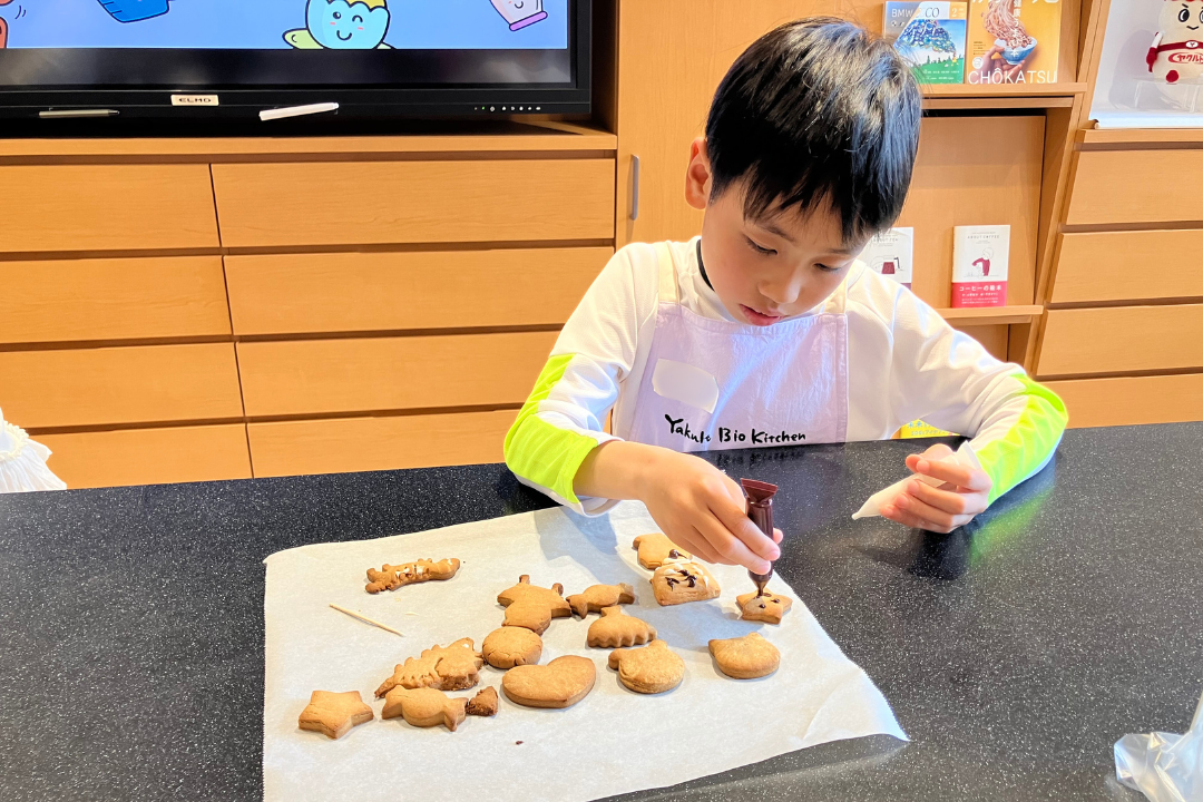 クッキーの型抜きや、チョコペンでのデコレーションにお子さまたちは夢中になって取り組んでいました。