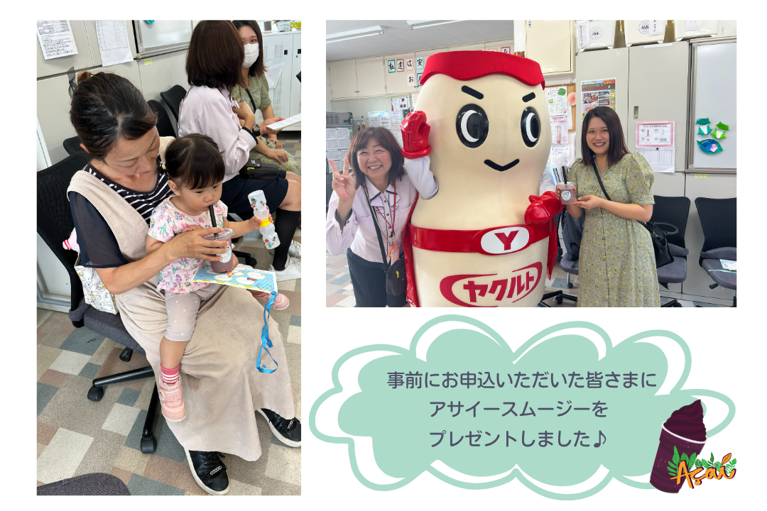 最後にヤクルトマンが登場し、一緒に記念写真を撮りました。終始にぎやかで楽しい時間となりました♪