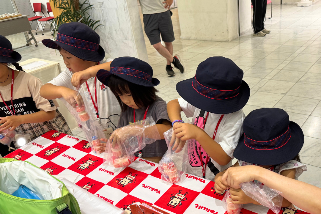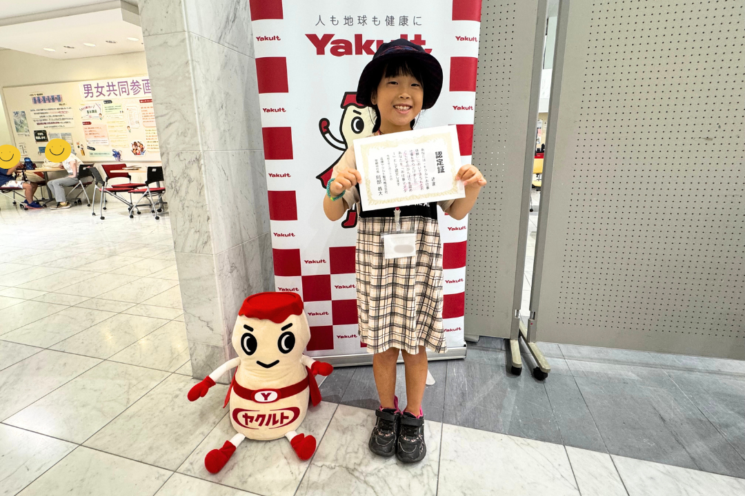 お届け体験を終えた後には、「ヤクルトマスター認定証」をお渡ししました。認定証を受けとる姿に、会場は温かな笑顔に包まれました。お仕事体験が夏休みの思い出の1ページになっていると幸いです。