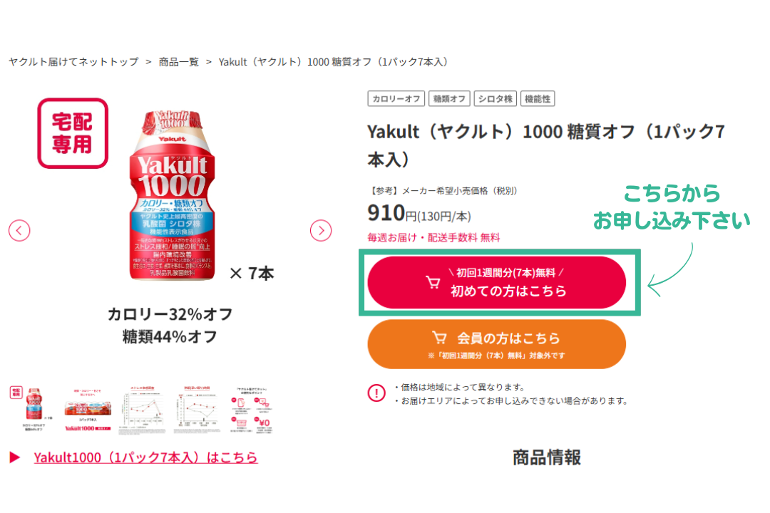 ※「ヤクルト届けてネット」に会員登録済みの方は対象外となります