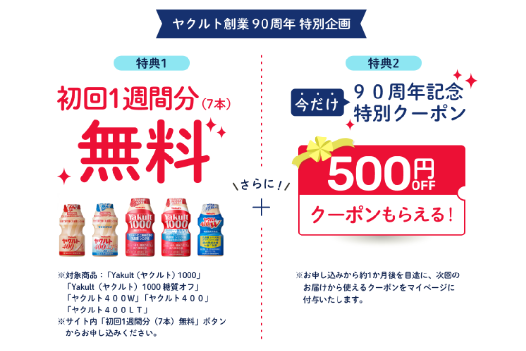 感謝の気持ちを込めて、はじめてヤクルトの宅配サービスをご利用される方を対象に、「ヤクルト届けてネット」ではお得なキャンペーンを実施しています!