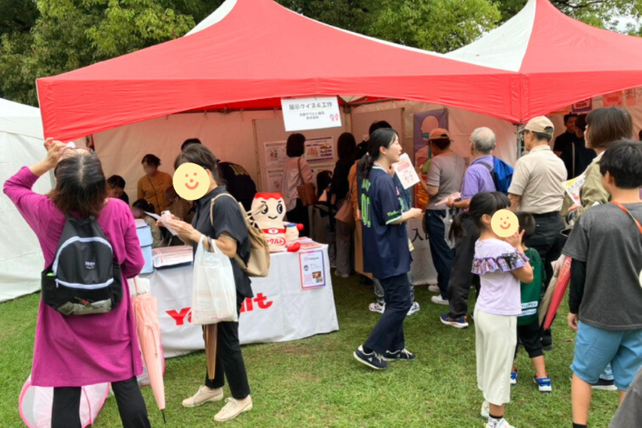 10月4日(土)、播磨町にある大中遺跡公園にて、「第33回大中遺跡まつり」が開催されました。兵庫ヤクルトは、大中遺跡公園内の町関係・連携協定ブースにて、腸内細菌や腸に関する展示・クイズ、ヤクルト容器での工作、「Newヤクルト 糖質・カロリー50%オフ」のサンプリングを実施しました。