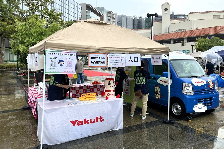 10月5日(日)、神戸市須磨区の名谷駅前広場にて「こども食堂フェスティバル×Reward Market」が開催されました。須磨区妙法寺にある古民家カフェを運営する「コトノハ」とハンドメイド販売やワークショップ等のマルシェを企画・運営する「Reward Market」が共催するイベントで、兵庫ヤクルトも企業ブースとして初出展しました。