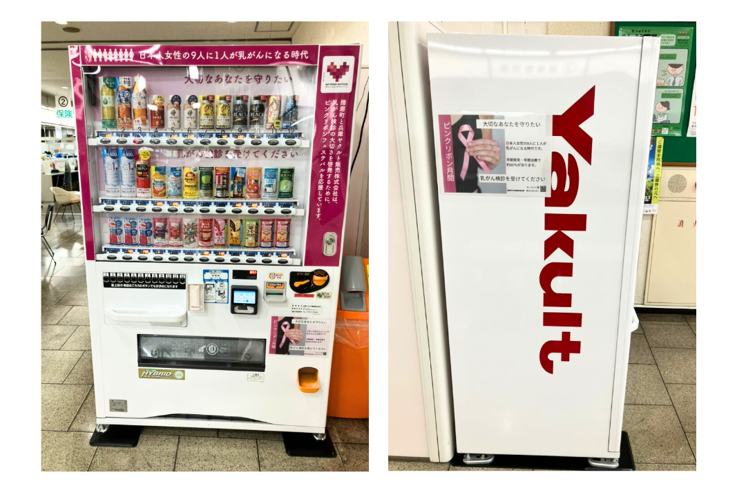 「ピンクリボン自動販売機」を見かけた際には、健康や乳がんについて考えるきっかけにしていただければ幸いです。
