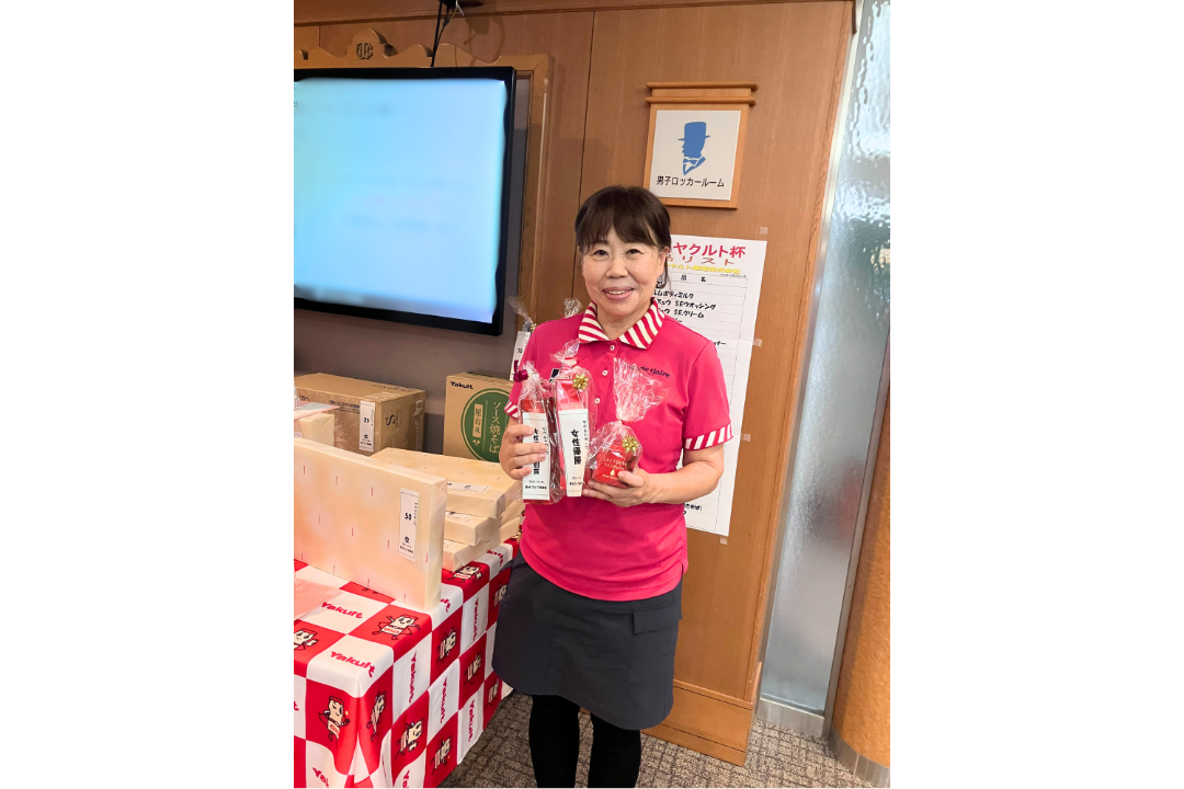 ヤクルト杯は地域の皆さまに兵庫ヤクルトを知っていただくとともに、ヤクルト商品にもふれていただく機会にもなっています。当日は、垂水ゴルフ倶楽部の会員の皆さまにご参加いただきました。