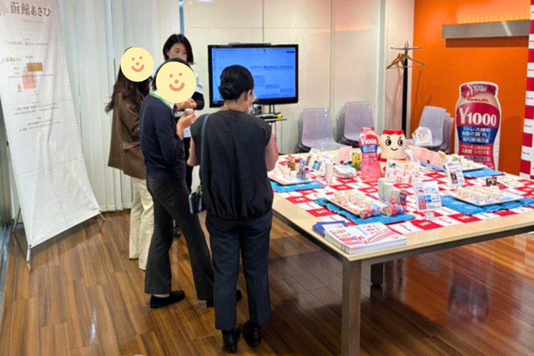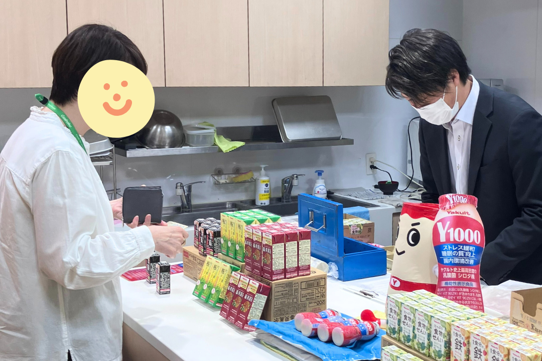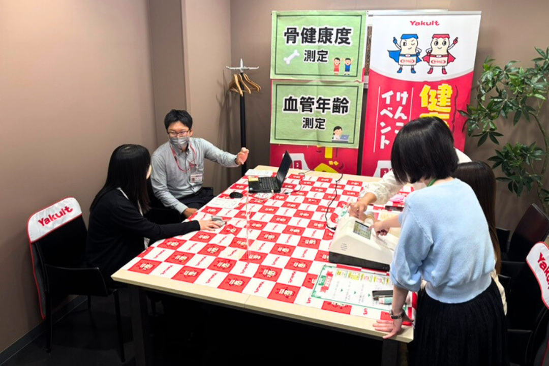 社員の皆さまの健康促進につながるイベントを実施したいとのお声がけをいただき、今回の開催が実現しました。当日は、血管年齢・骨健康度の測定会やヤクルト商品の試飲会・販売会を行いました。