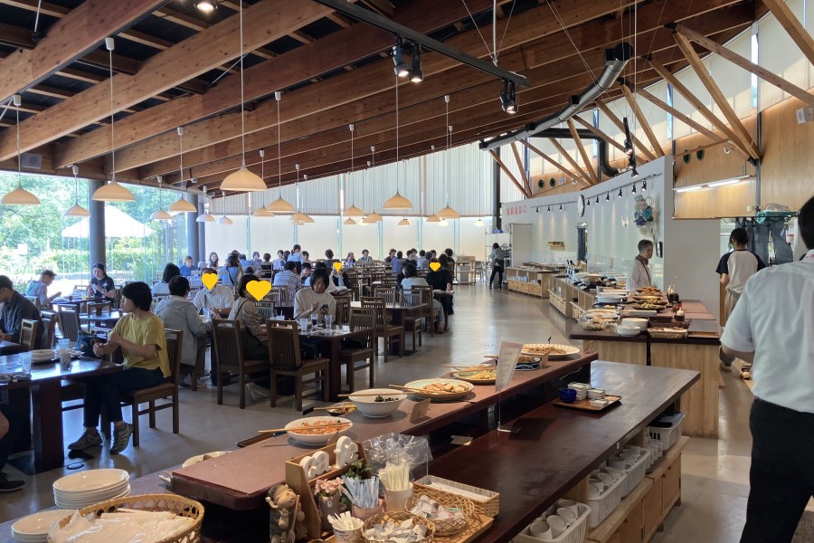 今回は、お食事先の1つ、あじさいフローラみきふれあいの館内にある「ランチバイキング 味彩苑」での様子をご紹介します。