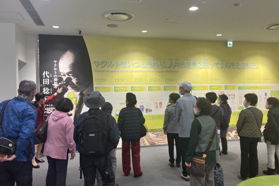 「工場見学健康ふれあい会」は、ヤクルトレディとお客さまが一緒にヤクルト工場の見学や食事を楽しみ、親睦を深めていただく兵庫ヤクルトオリジナル企画です。ヤクルト公式キャラクターの「ヤクルトマン」がデザインされた兵庫ヤクルトオリジナルバスで送迎いたします。