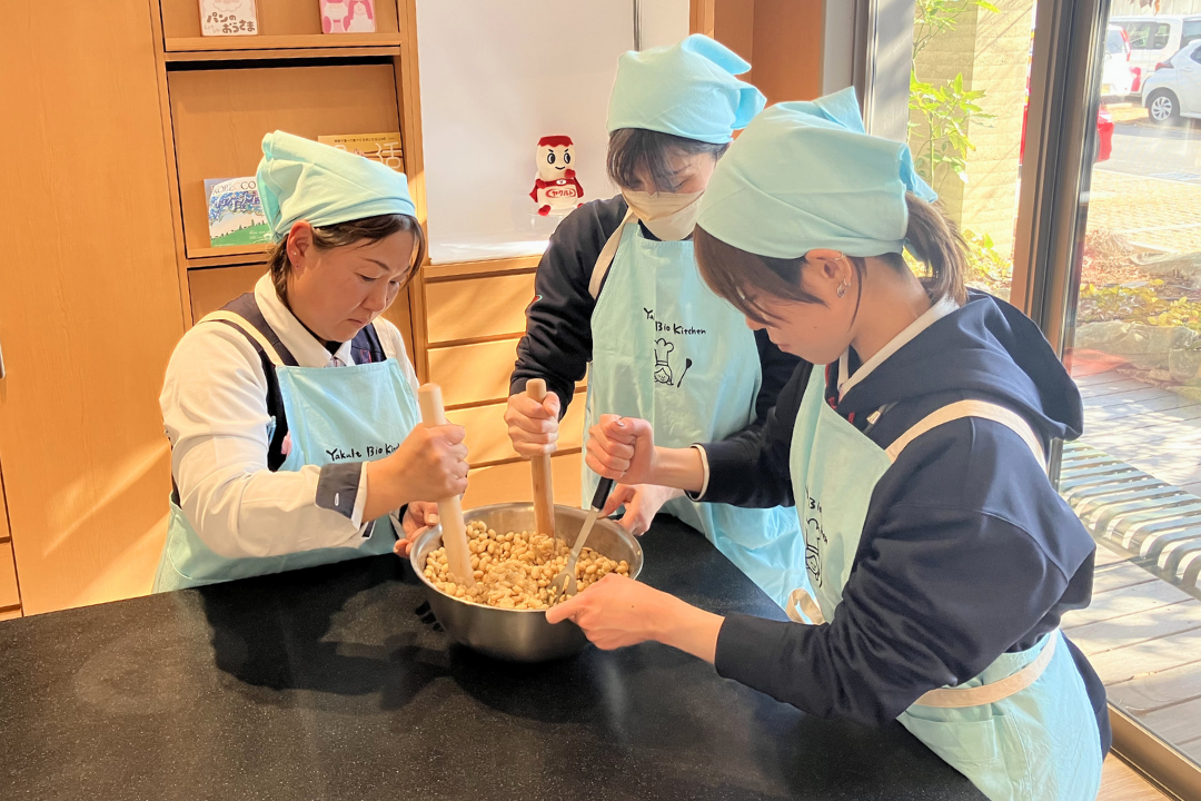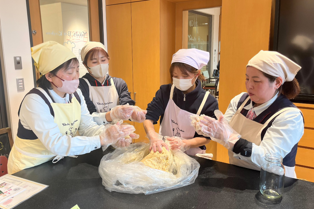 2月18日、兵庫ヤクルト本社「Yakult Bio Kitchen」にて、ヤクルトレディを対象に味噌づくり体験会を開催しました。発酵食品の1つである「味噌」は、毎日の食事に欠かせないものです。無添加の健康で美味しい味噌を作り、ご家庭での食卓に役立てていただけるよう実施しています。2024年にスタートしたこの体験会も、今回で3回目を迎えました。