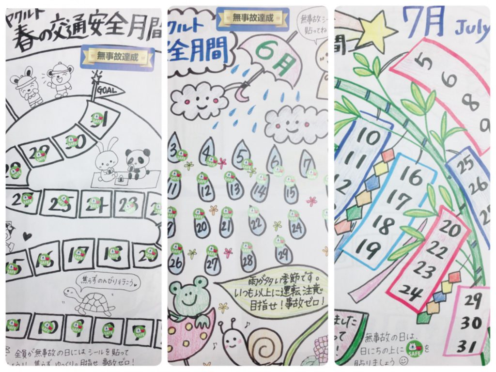 無事故目標カレンダーを作成し、事故がなければシールを貼って皆で意識できるよう取り組んでいます。