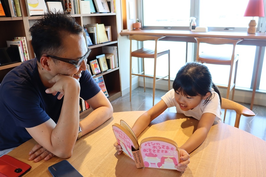 お食事のあとは、約700冊の書籍がある「やくると本の森」から、親子でお気に入りの本を選んで読書していただきました。