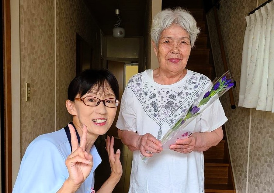 今年も無事に敬老の日が迎えられたことを共に喜び合いながら、「これからもお元気でお過ごしいただきたい」という想いを込めて、お花をお渡ししております。