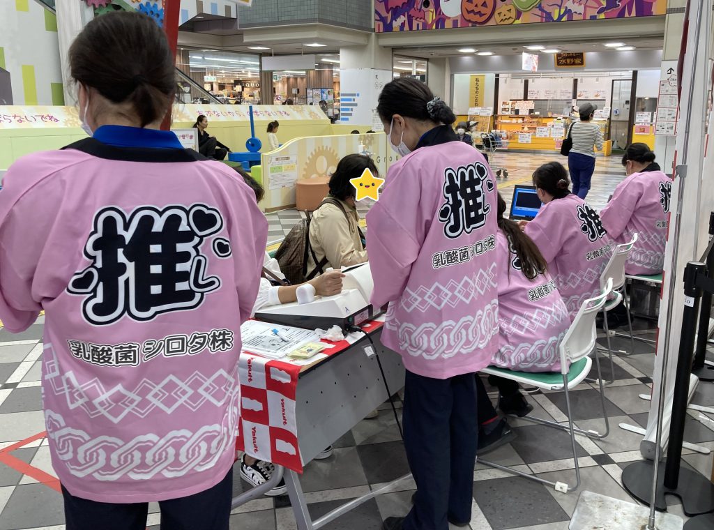 イベントに参加するスタッフは、【乳酸菌 シロタ株 推しっ♥】と書かれた兵庫ヤクルトオリジナルハッピを着用しました。インパクトのあるデザインは、ご来場の皆さまの注目を集めていました。