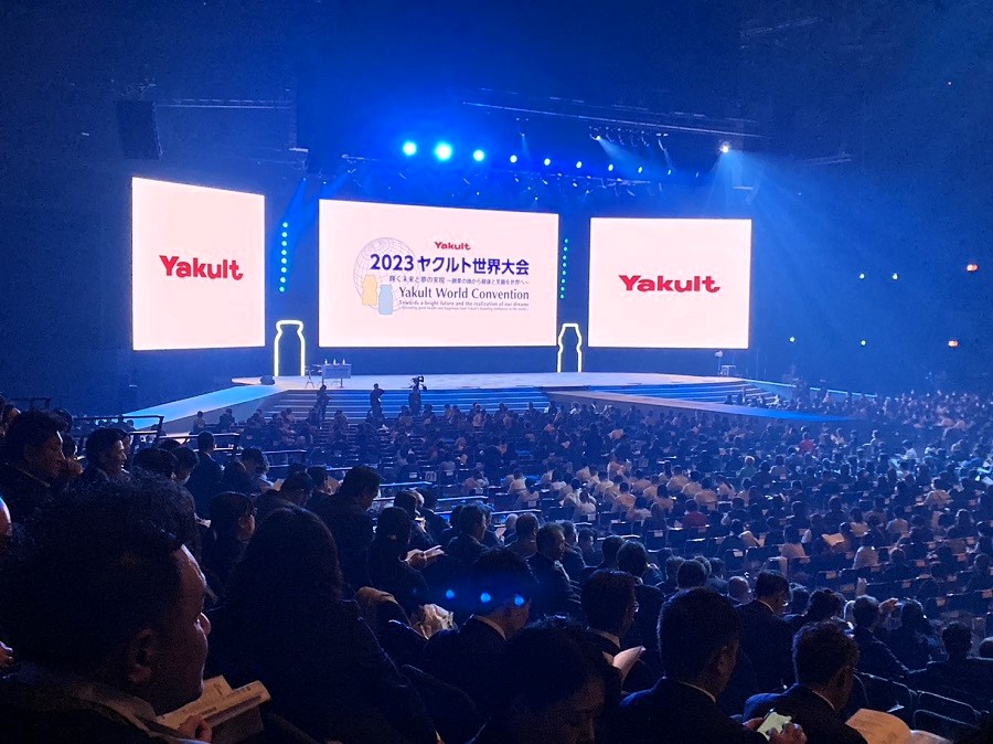 11月19日(日)に「2023ヤクルト世界大会」がマリンメッセ福岡にて開催されました。ヤクルト世界大会は、世界40の国と地域よりヤクルトレディや社員が集い、表彰式典や懇親会を通じ、グループの結束を強める大会です。ヤクルトレディ誕生60周年となる今年は、ヤクルト創業の地である福岡で開催され、約3,000名の表彰受賞者・招待者が集まりました。