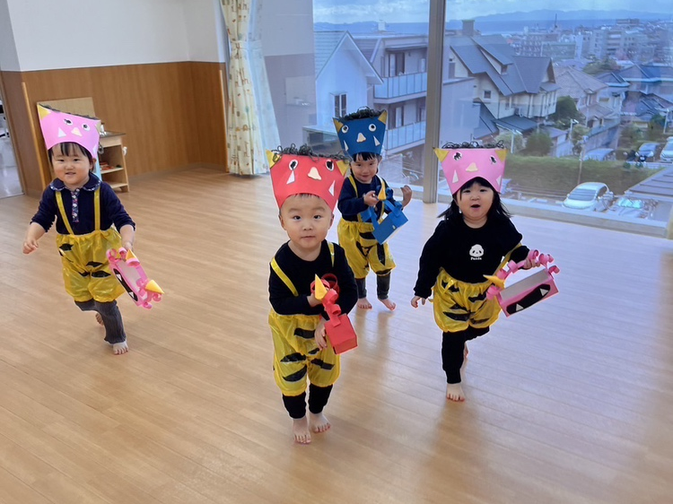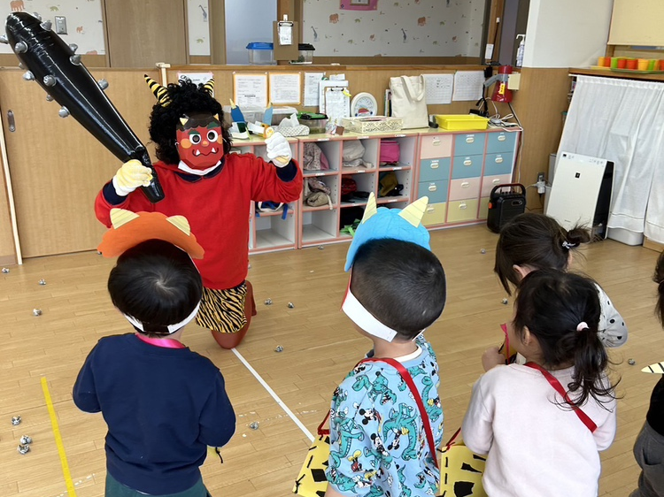 2月2日、ヤクルトキッズスクール保育園で節分行事の豆まきをしました。