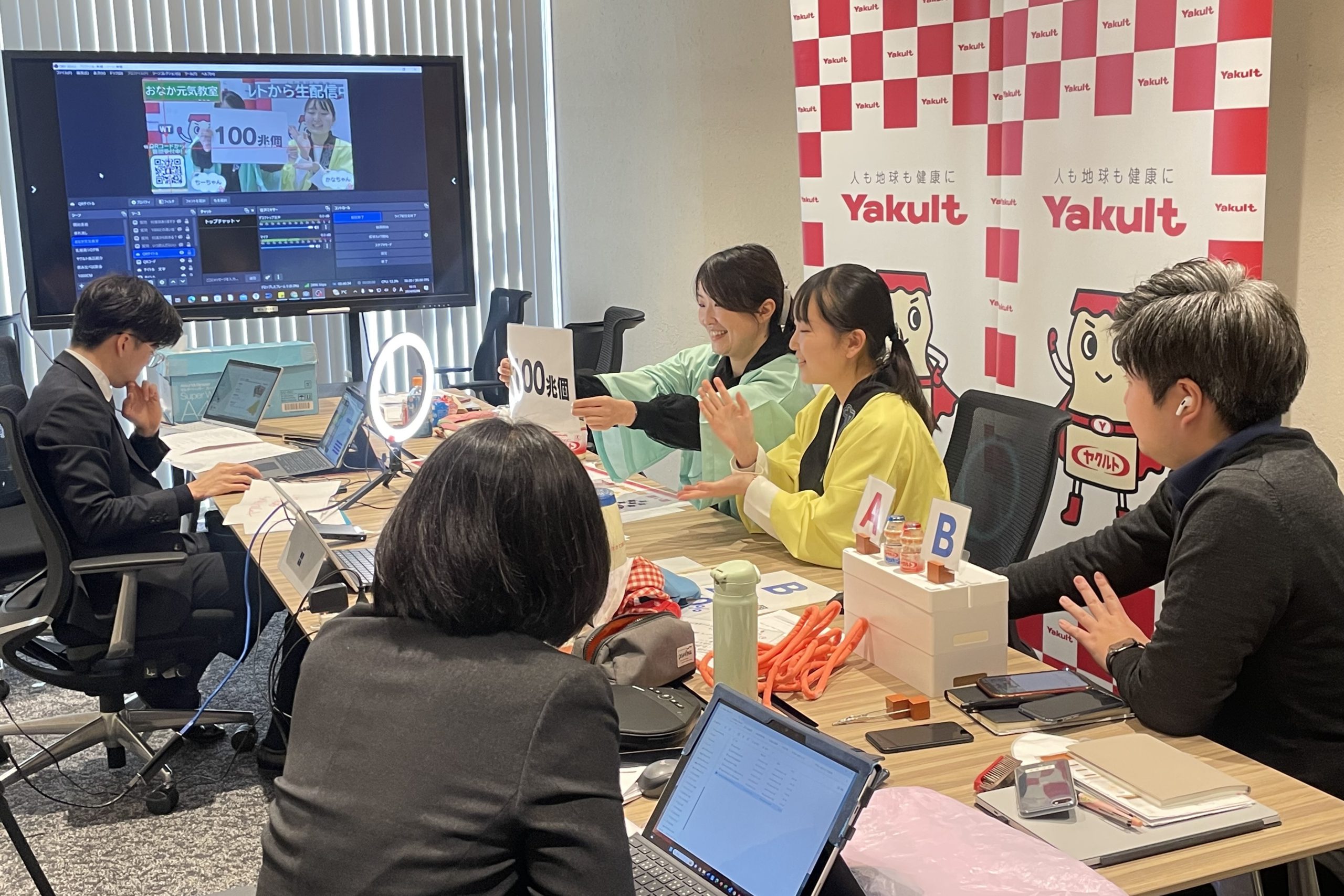 ライブ配信では、ヤクルトならではの腸と腸内細菌の働きや、ヤクルトの商品について楽しく知っていただけるよう数種類コンテンツを用意してお話をしました。