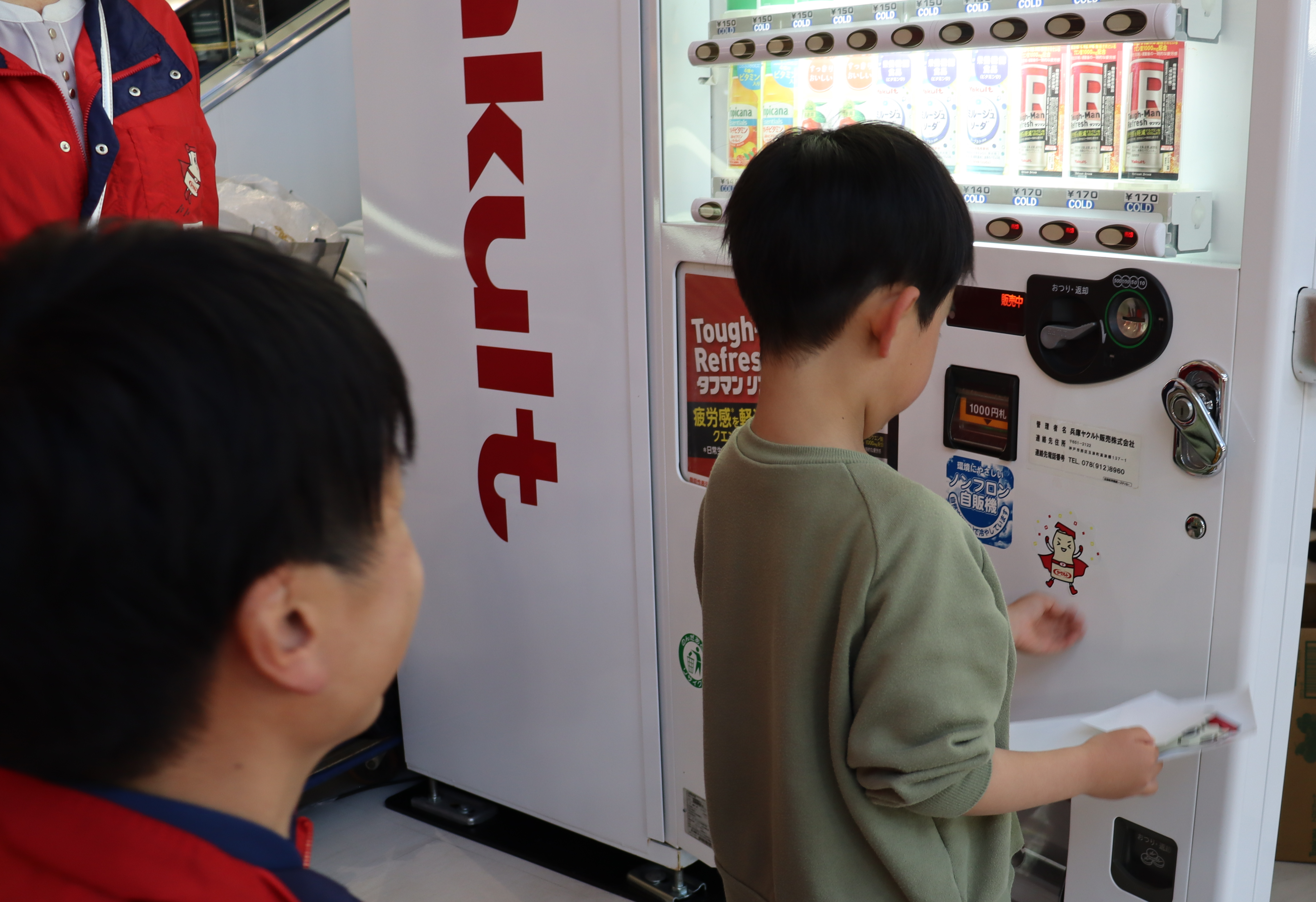 「自動販売機お仕事体験」も実施しました。こちらは小学生のお子さまを対象に、商品納品や機械にシールを貼るラッピングの体験もしていただきました。