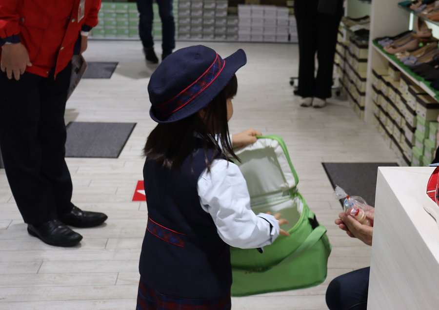 「ヤクルトさんお仕事体験」には、3~7歳児のお子さまを対象に参加していだきました。キッズ用制服に身を包み、ショッピングセンター内の店舗にヤクルトのお届けをしていただきました。