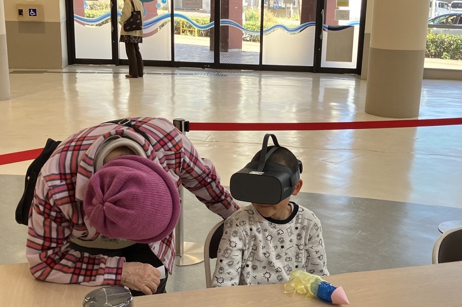VRゴーグルをつけて、「おなか探検ツアー」をご覧いただきました。360℃の映像で、おなかの仕組みや、おなかの中にいる菌のことを楽しく知っていただくことができました。
