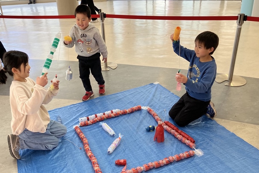 隣の釣堀コーナーでは、魚釣り遊びにもチャレンジしていただきました。