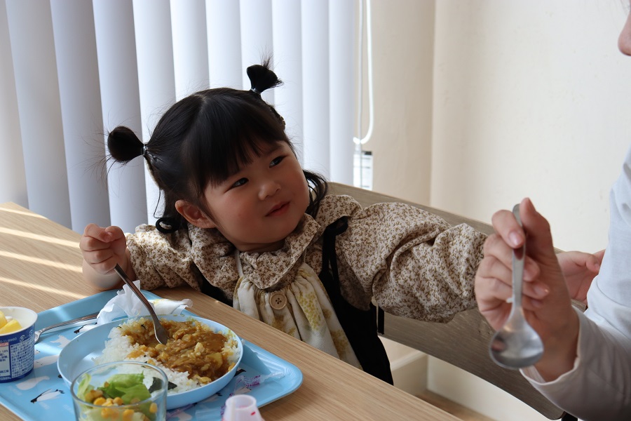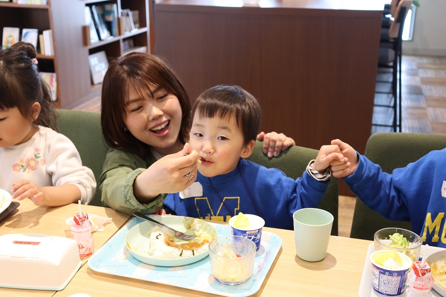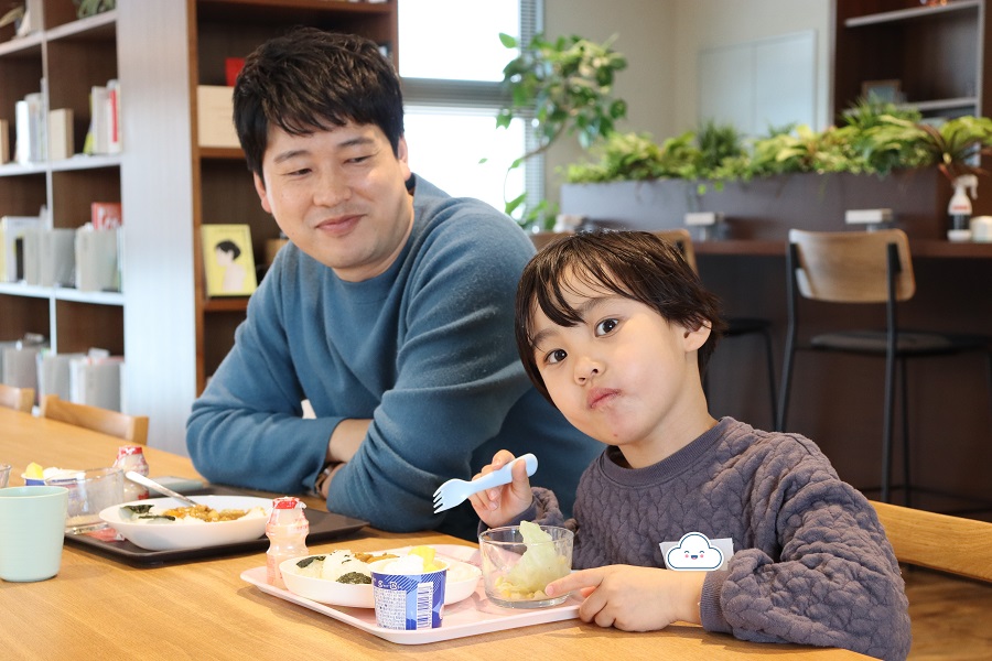 兵庫ヤクルトの社員食堂「Minori café」で、親子でゆっくりお話をしながらお食事していただきました。おかわりもたくさんしていただきました。