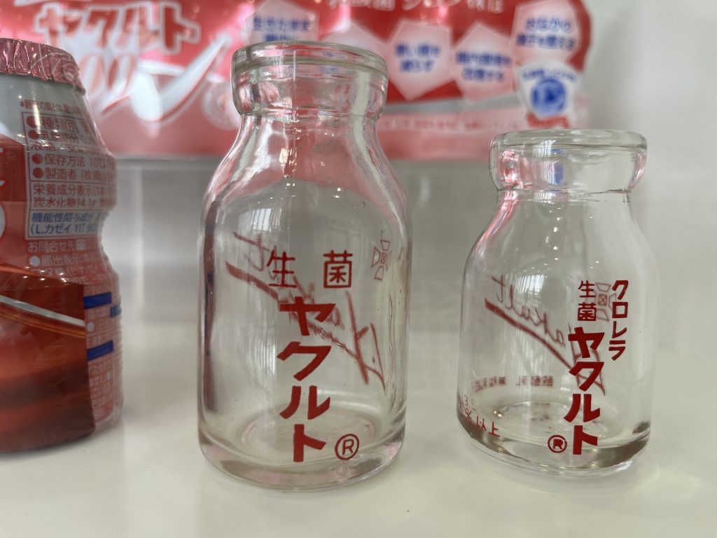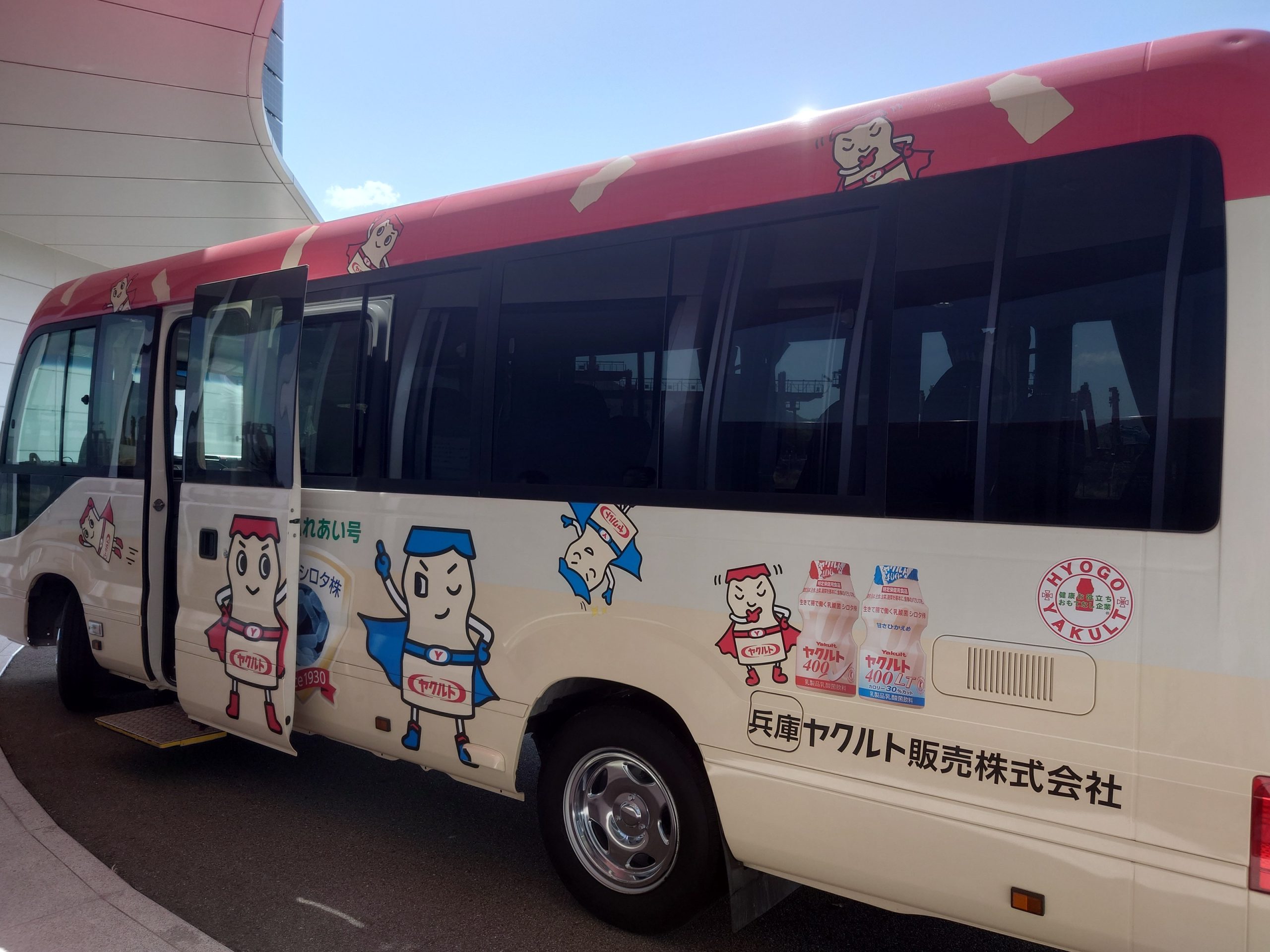 今回は3月、4月に開催した中から見学会の様子をピックアップ!!かわいいラッピングバスに乗って三木市にあるヤクルト本社兵庫三木工場へ。1Fホールではいろいろな国や地域のヤクルト容器や昔懐かしいガラス瓶の容器が展示してあります。