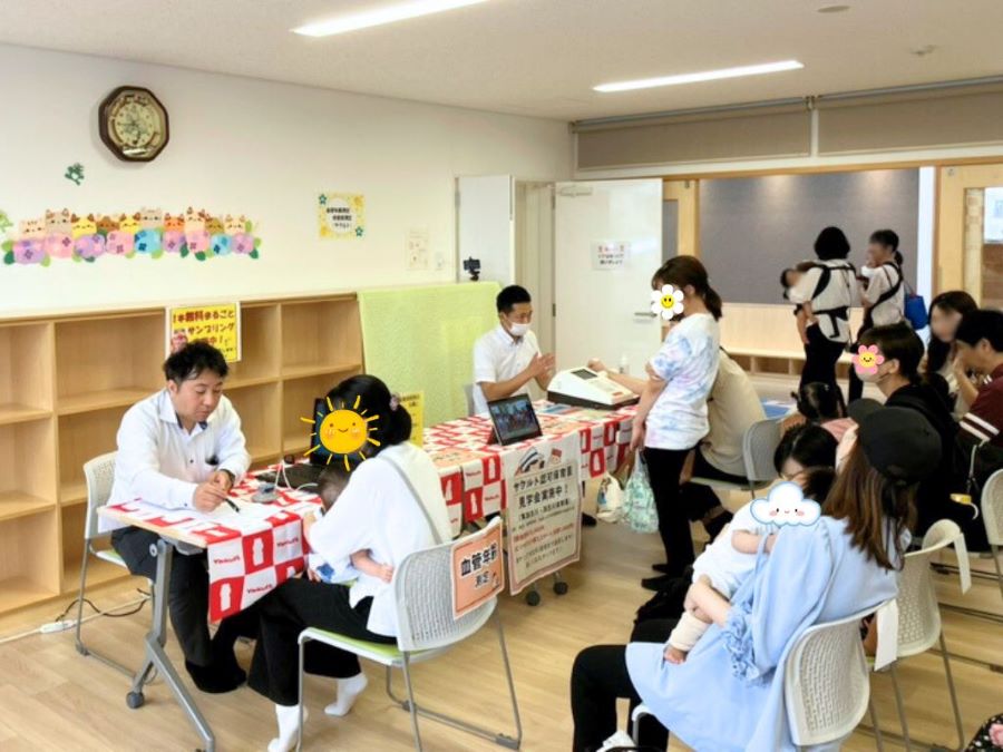 6月28日(金)、東加古川子育てプラザにて、「赤ちゃんオリンピック」が開催されました。同施設では、ヤクルトの自動販売機を設置させていただいており、昨年に引き続き、健康測定ブースへの出展依頼をいただきました。