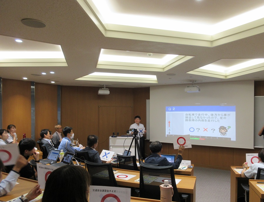 また弊社社員による「交通安全○×クイズ」をとおして、交通ルールについて改めて確認することができました。最後に、事前に募集した身近な交通ルールの疑問や質問を喜多村課長にわかりやすく丁寧にご説明いただきました。