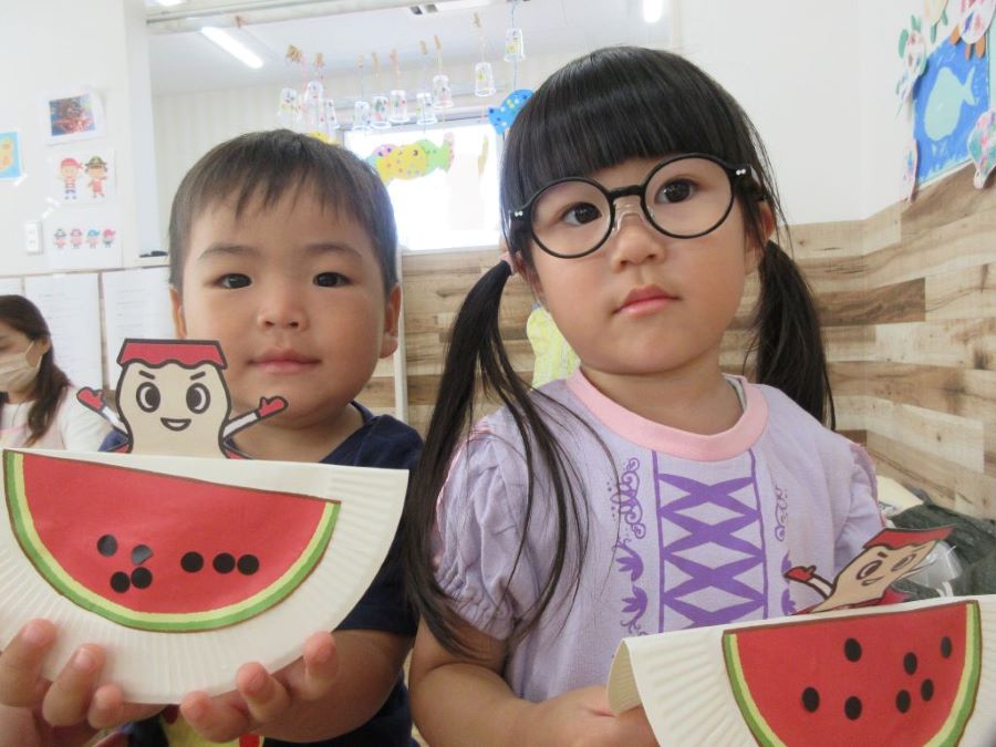 お話の後は、紙皿を使った制作を行いました。完成した作品を嬉しそうに見せあい、ゆらゆらと動かしてお友だちと遊ぶ姿も見ることができました♪