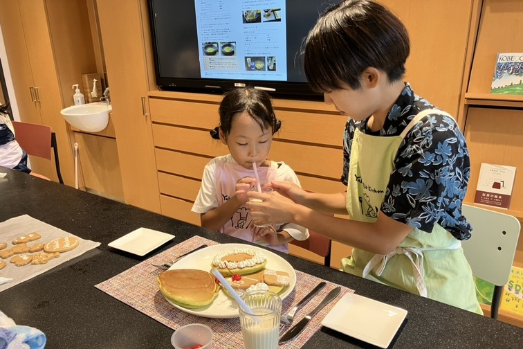 お子さんたちは初めて使うフライパンやミキサー等にドキドキしたご様子でしたが、お母さんと一緒に頑張って作ってくれました。そしてチョコペンやホイップクリームで可愛くデコレーションもしていただきました。