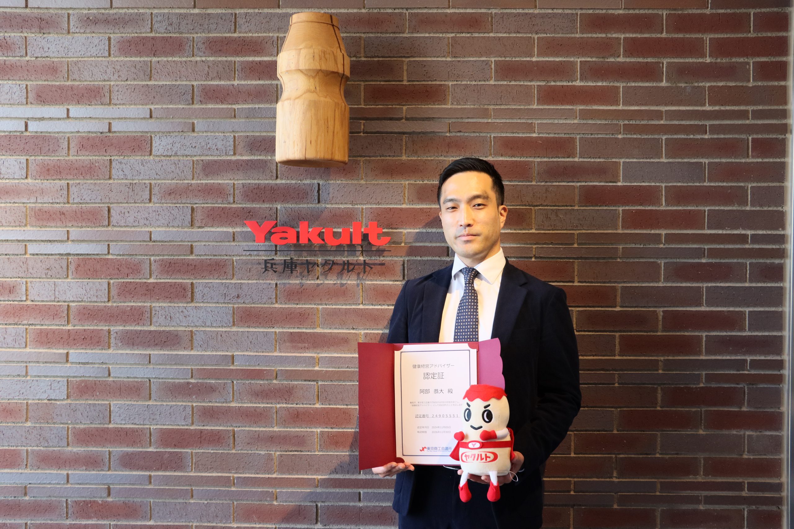 兵庫ヤクルトは、社員一人ひとりが心身の健康保持増進に自律的に取り組めるよう、また、地域のお客さまやお取引先企業の皆さまの健康をサポートし、地域に健康の輪を広げていきたい想いから、社員の「健康経営アドバイザー」認定を推進しています。社内における健康経営へ取り組む意識向上を図るため、社長自ら率先して研修を受講し、2024年10月末で正規社員159名中50名が取得いたしました。