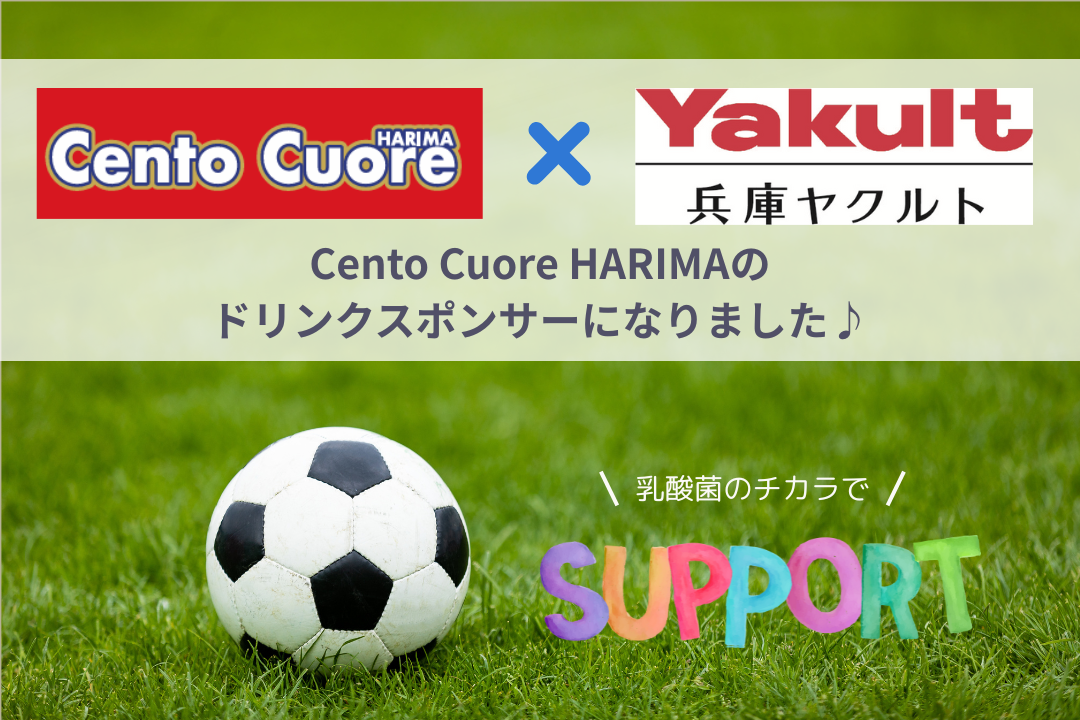 兵庫ヤクルトは、2025年4月1日より、サッカーチーム「Cento Cuore HARIMA」のドリンクスポンサーに就任いたしました。
