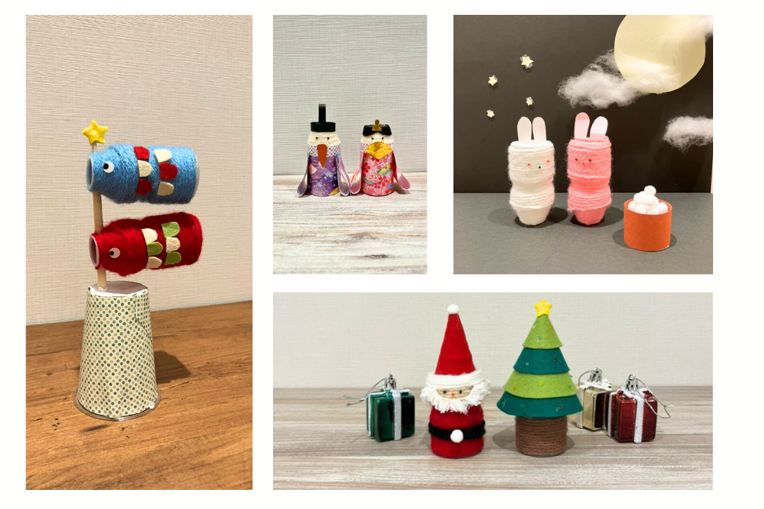 こいのぼりやサンタクロースなど、季節や行事に合わせた製作物です。ぜひ作って飾ってみてください♪