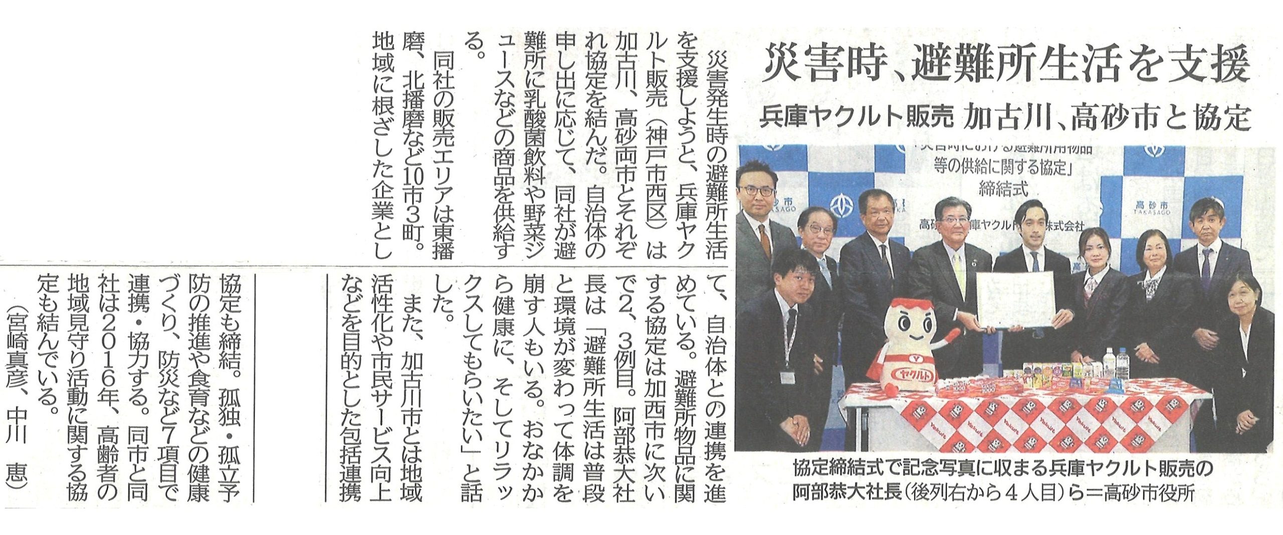 - 加古川市、高砂市との協定締結が新聞に掲載されました - 2026年2月10日