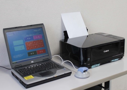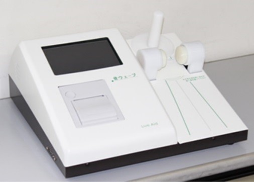 □ヘモグロビンチェック(抹消血管モニタリング装置「アストリム」。約40秒でフェモグロビン推定値を図ります