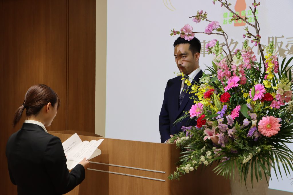 新入社員決意表明では、地域の健康お役立ちへの強い使命感や熱い想いを示していただきました。