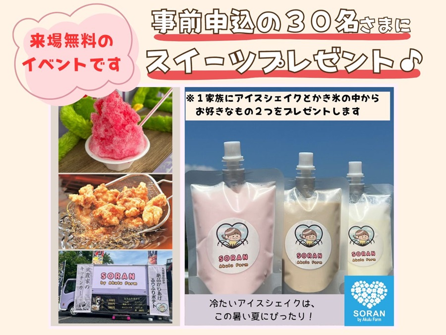 事前予約いただいた方30名限定特典「アイスシェイク・かき氷」をプレゼント!