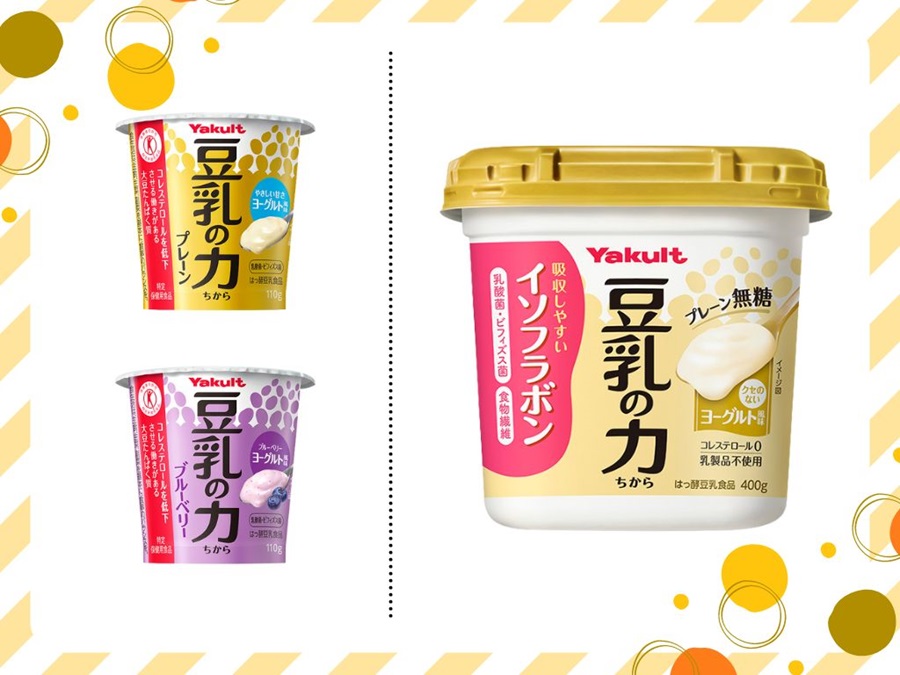 株式会社ヤクルト本社は、豆乳を乳酸菌とビフィズス菌で発酵させて作ったはっ酵豆乳食品、「豆乳の力 プレーン」(110g)、「豆乳の力 ブルーベリー」(110g)、「豆乳の力 プレーン無糖」(400g)を2024年10月7日に発売します。