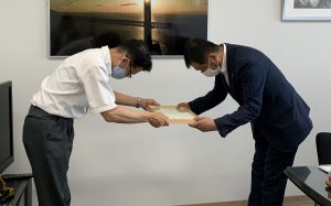 6月4日、東播磨県民局にて、伊藤裕文県民局長より本堂専務へ授与いただきました。