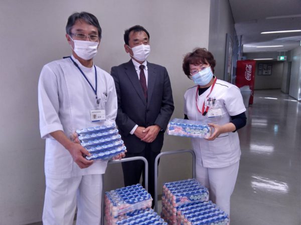 弊社といたしましては、地域の医療を支える医療従事者の皆さま、関係機関の皆さまへ、感謝の気持ちを込め『ヤクルト 400LT』をお贈りさせていただきました。