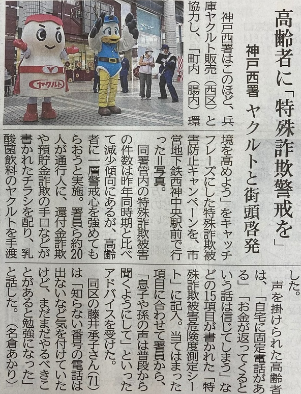 神戸西警察署様主催の振り込め詐欺防止キャンペーンに11月5日に参加させていただきました。