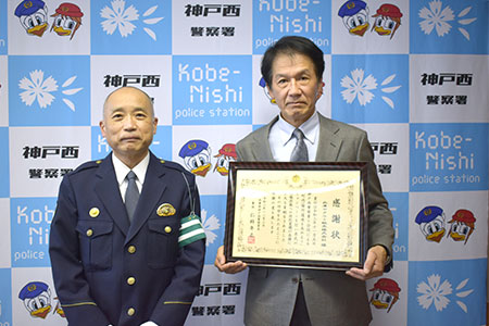 12月3日に神戸西警察署様より感謝状を授与いたしました。