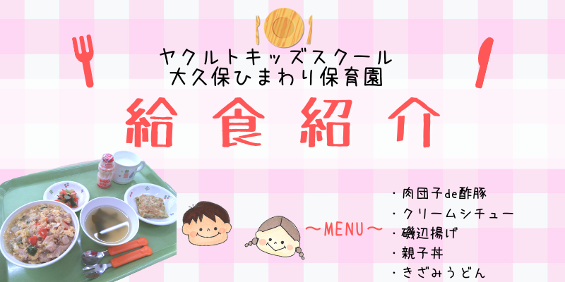 ヤクルトキッズスクール須磨・舞子・西神戸・大久保・東加古川・加古川保育園でこどもたちが食べている給食をご紹介します♪
