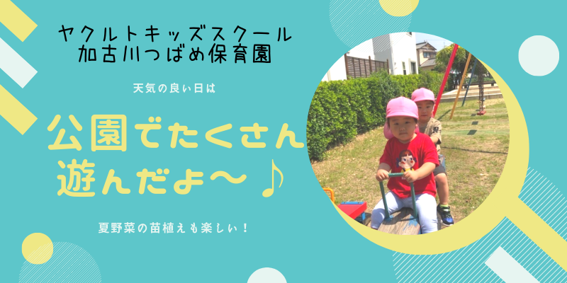 加古川つばめ保育園では天気の良い日には近隣の公園や園庭に出て遊んでいます!