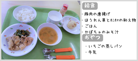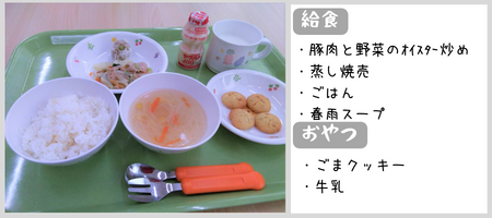 ヤクルトキッズスクール須磨・舞子・西神戸・大久保・東加古川・加古川保育園でこどもたちが食べている給食をご紹介します♪