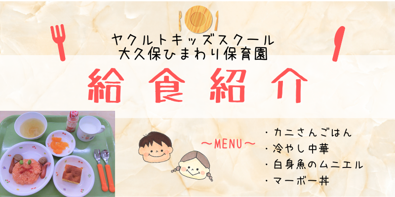 ヤクルトキッズスクール須磨・舞子・西神戸・大久保・東加古川・加古川保育園でこどもたちが食べている給食をご紹介します♪