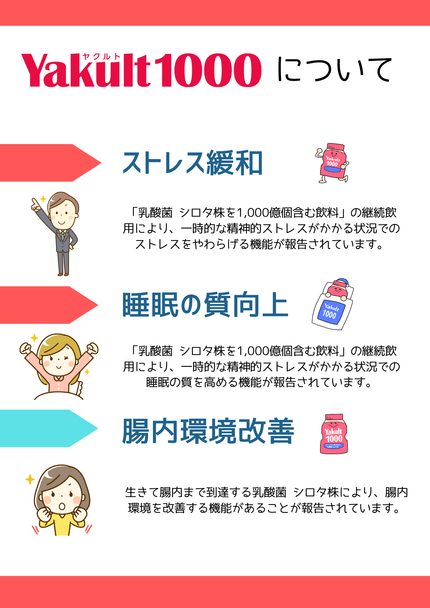 ※このキャンペーンは兵庫ヤクルト販売の管轄エリアで、 初めてヤクルトをお飲みになる方のみキャンペーンとさせていただいております。 エリアの確認はコチラからご確認ください。 ストレス緩和・睡眠の質の向上に関する研究成果 申し込みフォーム このキャンペーンは兵庫ヤクルト販売の管轄エリアが対象です。その他のエリアのお客さまは本キャンペーンは受け付けておりません。 *お名前姓名セイメイ *年代10代20代30代40代50代60代70代80代90代以上 *性別男性女性未回答 *住所※弊社お届けエリアは、神戸市(兵庫区一部、長田区一部、須磨区一部、垂水区、西区、中央区一部)/明石市/稲美町/播磨町/加古川市/高砂市/姫路市一部/加東市/西脇市/多可町/加西市/小野市/三木市です。 エリア外のお問い合わせにつきましては、該当エリア販売会社へお問い合わせくださいますよう宜しくお願い申し上げます。〒-都道府県市区町村市区町村以下 *メールアドレス確認用に再度入力してください。※セキュリティ保護のため貼付けを禁止しております。 *電話番号 *申込口数1口は4週間キャンペーン1人分です。 1口の場合、4週間の間、1週間に1パックお届けいたします。 例)お申し込みがおひとりの場合 1口自由記入(数字のみの入力は受付できませんのでご了承ください)確認画面へ戻るPhone送信